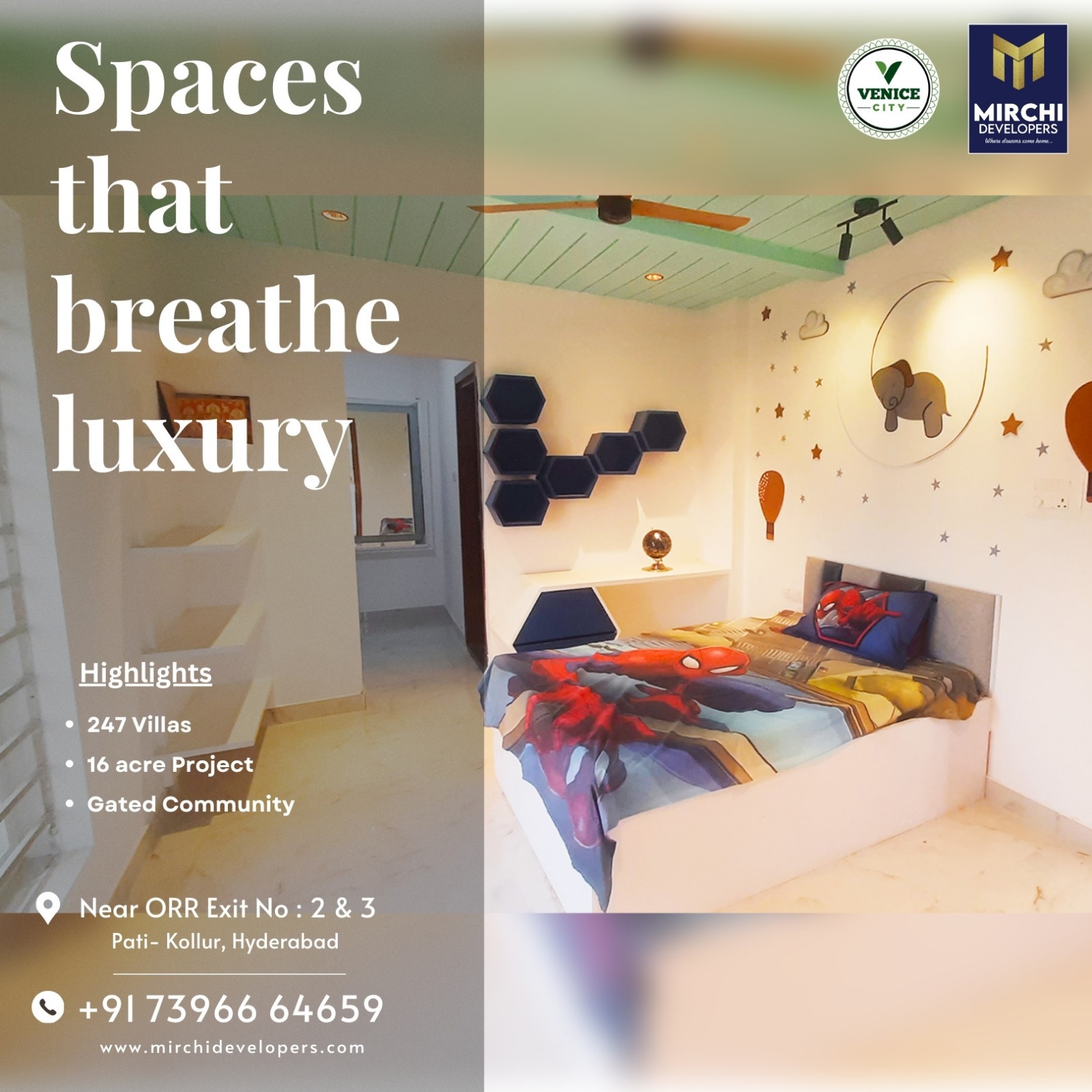 Offering spacious ready-to-move-in homes with world-class amenities in an excellent location, these villas are crafted to enhance your living experience. Whether you seek a permanent residence or a smart investment opportunity, Mirchi Developers promises you the best of both worlds. Seize the chance to own a villa in one of Hyderabad’s most promising residential neighborhoods.